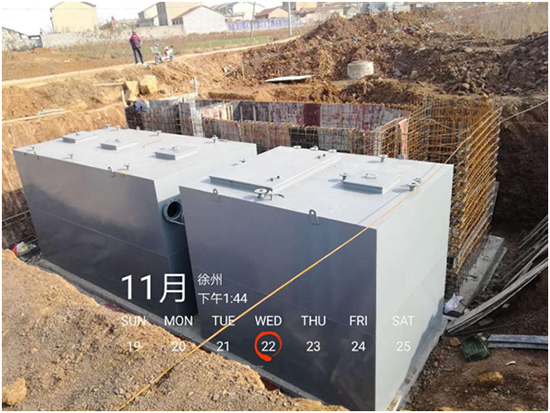 (1)磨石塘村:該終端為地下式,設計污水處理水量為80噸/天,于2017年11月10日進場施工,2017年12月15日設備安裝調試完成,經處理后生活污水達到《城鎮污水處理廠污染物排放標準》(GB18918-2002)一級A標準,出水外排,終端總占地面積286平方米。
