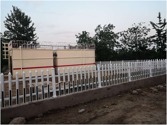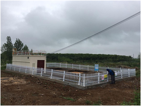 (5)沙古堆村:該終端為地上式,設計污水處理水量為50噸/天,于2017年12月19日進場施工,2018年1月23日設備安裝調試完成,經處理后生活污水達到《城鎮污水處理廠污染物排放標準》(GB18918-2002)一級A標準,出水外排,終端總占地面積187平方米。