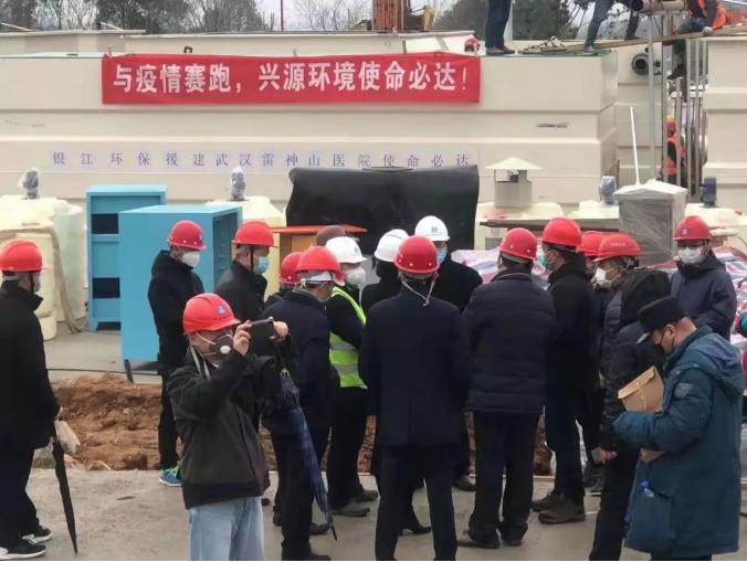 湖北省環保廳,武漢市委市政府領導視察火神山醫院污水處理站現場。